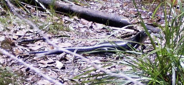 After a couple minutes of this slow and easy progress I had the beauty in full vision. From tail tip to nose it must have been over two feet and as black as midnight. It was a magnificent creature.
