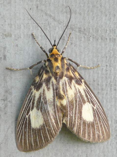 Further on I came to a moth resting on a synthetic surface. It’s a lovely colour and shape, elegant, with its long antennae, its cloak wings furred at the shoulder.