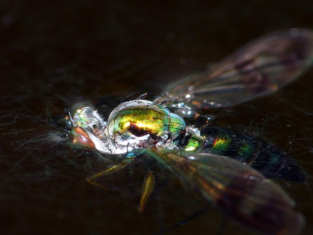 Eating, another fly that also stood proud, contained. Could just as easily happen to him, my little neon fly.