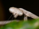 A greying mantis was out exploring, yes greying – he looked aged to me, making his way slowly through the forest of greenery that is the passion plant.
