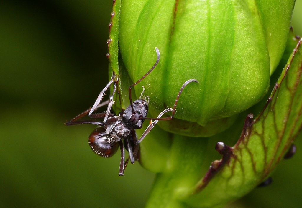 The ants are busy patrolling the passion fruit plant and they are not interested in honey. I tried a bit to see if one would stand still long enough to get a shot with the strongest lens – shortest depth of field/focus. Not interested.