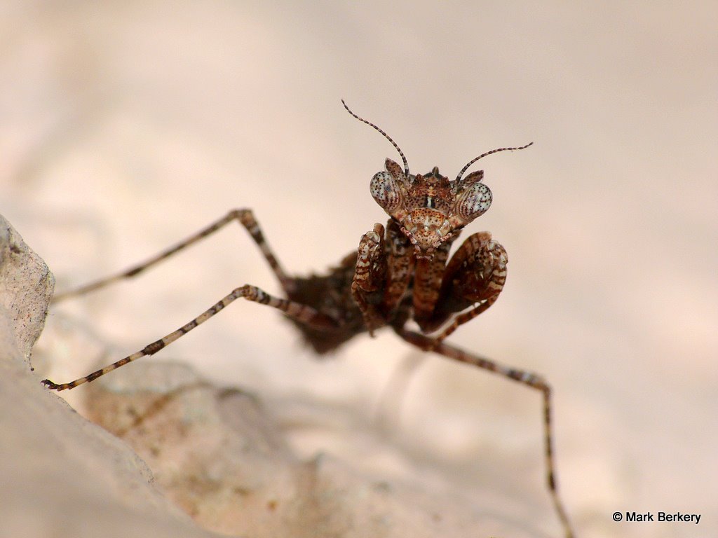 This Mantis is usually only ‘seen’ camouflaged against the bark of trees in the bush, in my experience. I followed this fellow around the wall of a building for a while to see what would happen. He didn’t like being corralled but it worked to slow him down for a while and keep him from running away.
