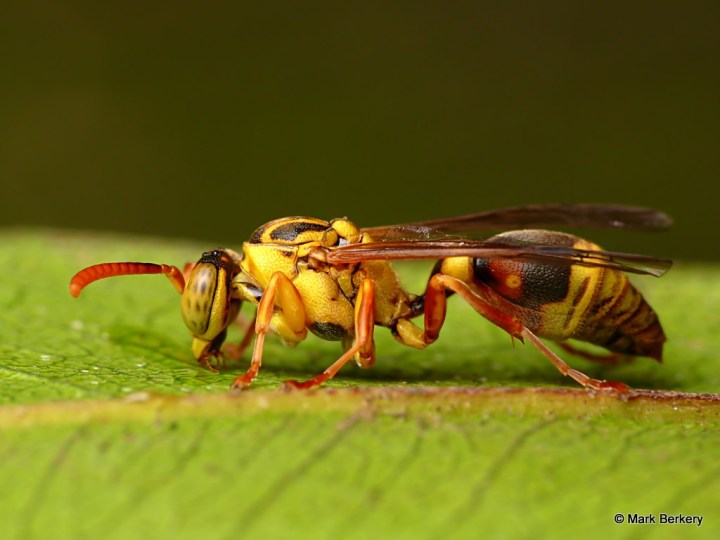 … landed on my leg the other day. I gave it a finger to climb on and moved it to the nearby picnic table. I did think it is a wasp and they do sting, but not all are aggressive and some of their stings are little more than a minor irritation.