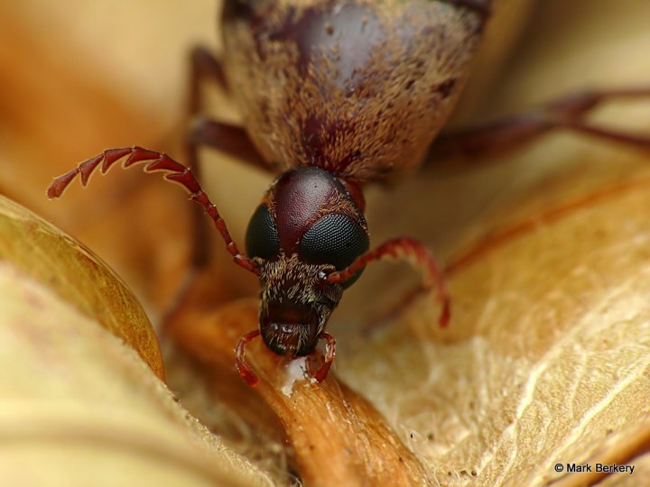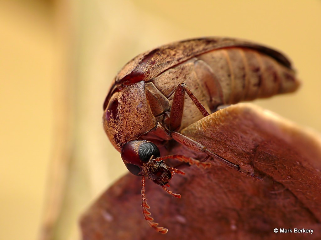 These beetles have been having their season lately, showing up around the house at all hours, head down – hiding in plain sight. Not easy to get a shot of the face as they usually have their eyes down, flat to the surface.
