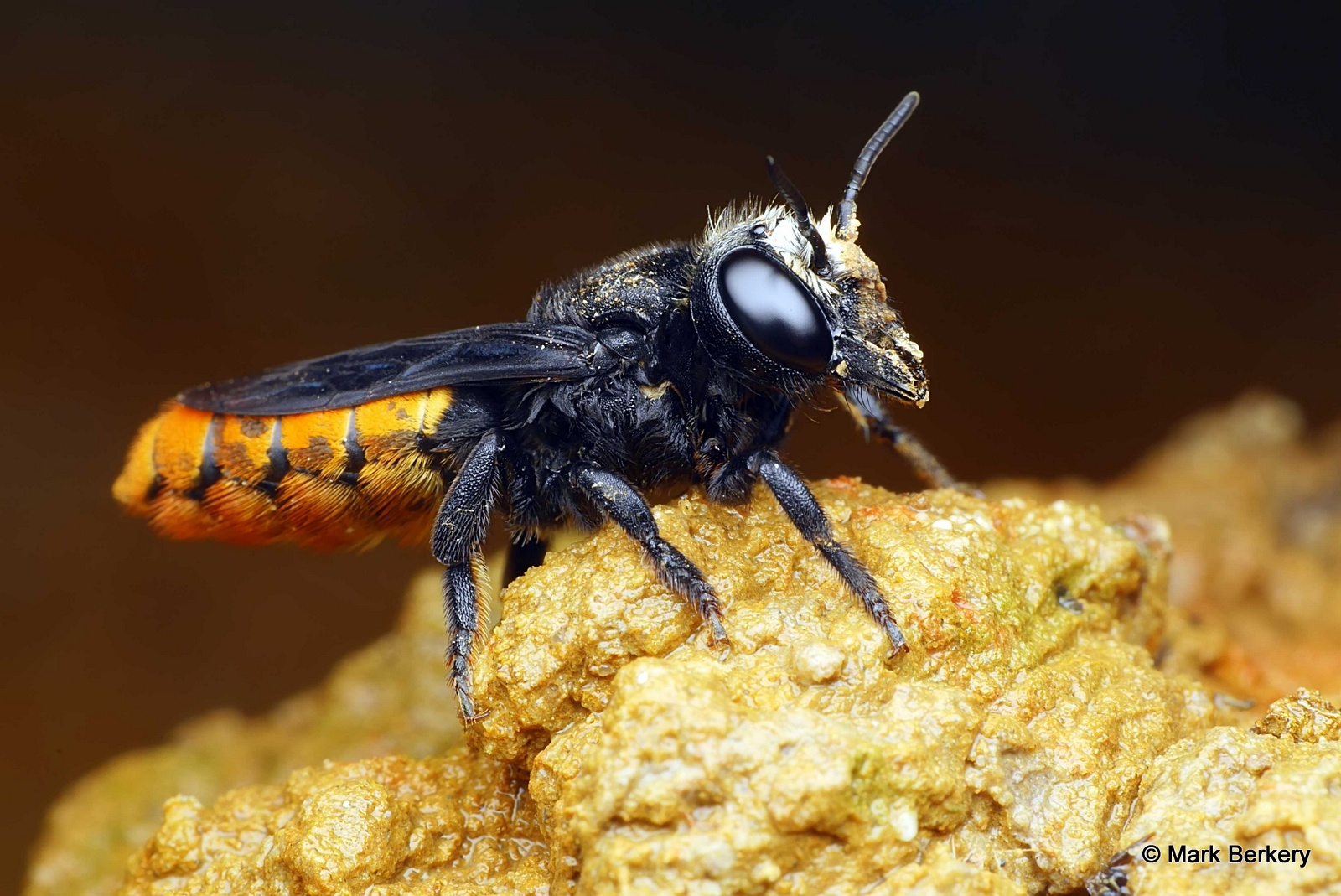 Orange Tail Resin Bee mucking about … in the mud left for them to use in sealing up their nest entrances.