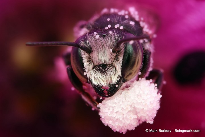 Wandering about in the colour and nourishment it didn’t stay still for long. Big pollen grains for good bee work.