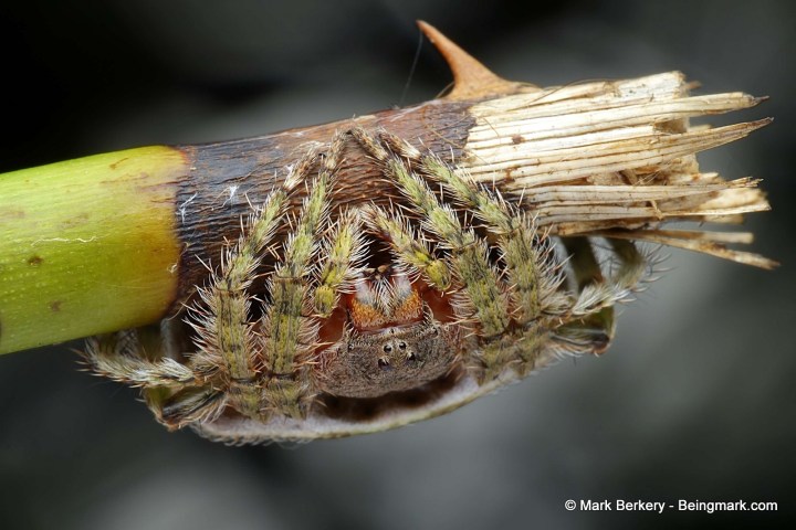 I don’t think I’ve encountered a spider that can mold itself around a branch like this. How marvelous! Do you know its taxonomy?