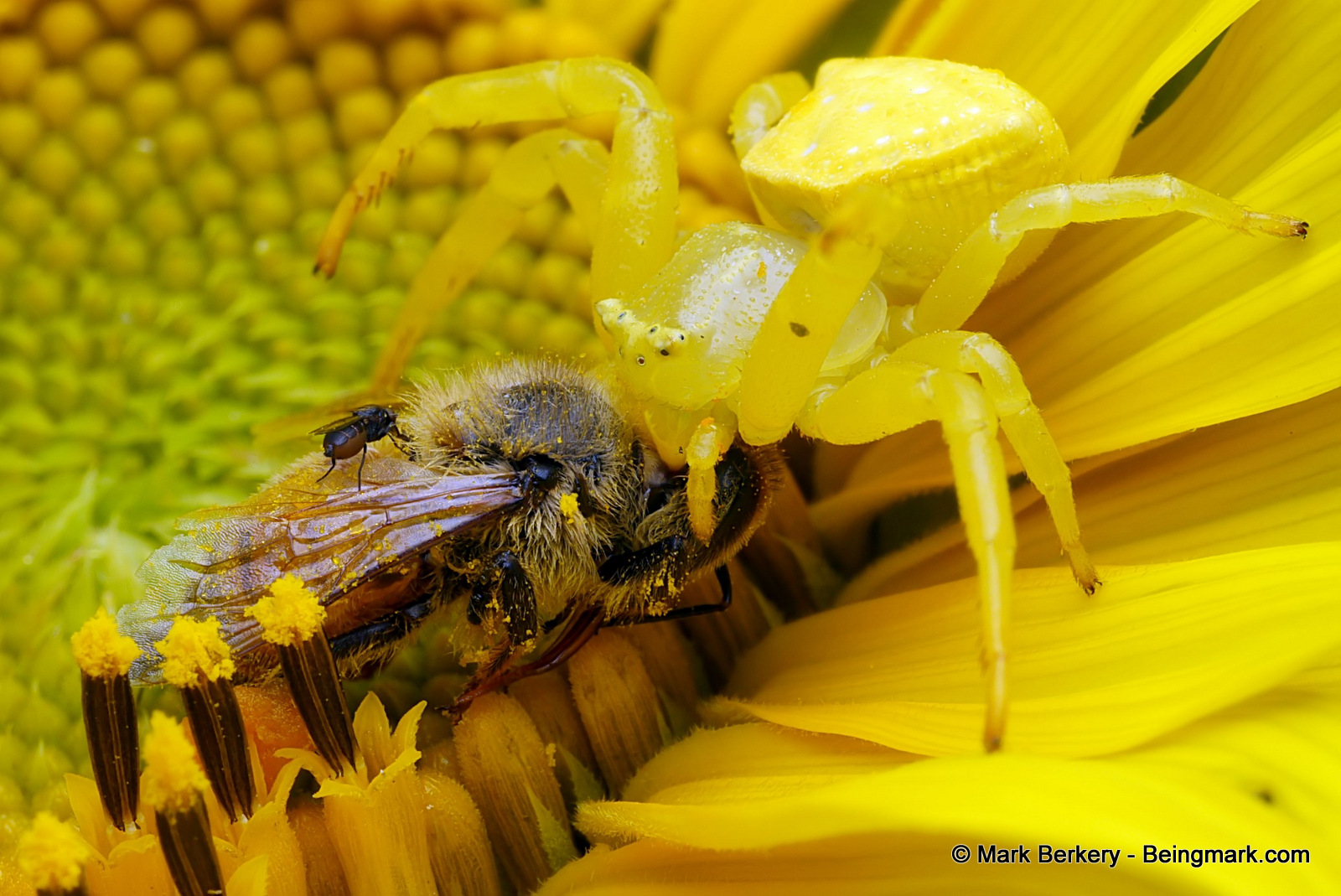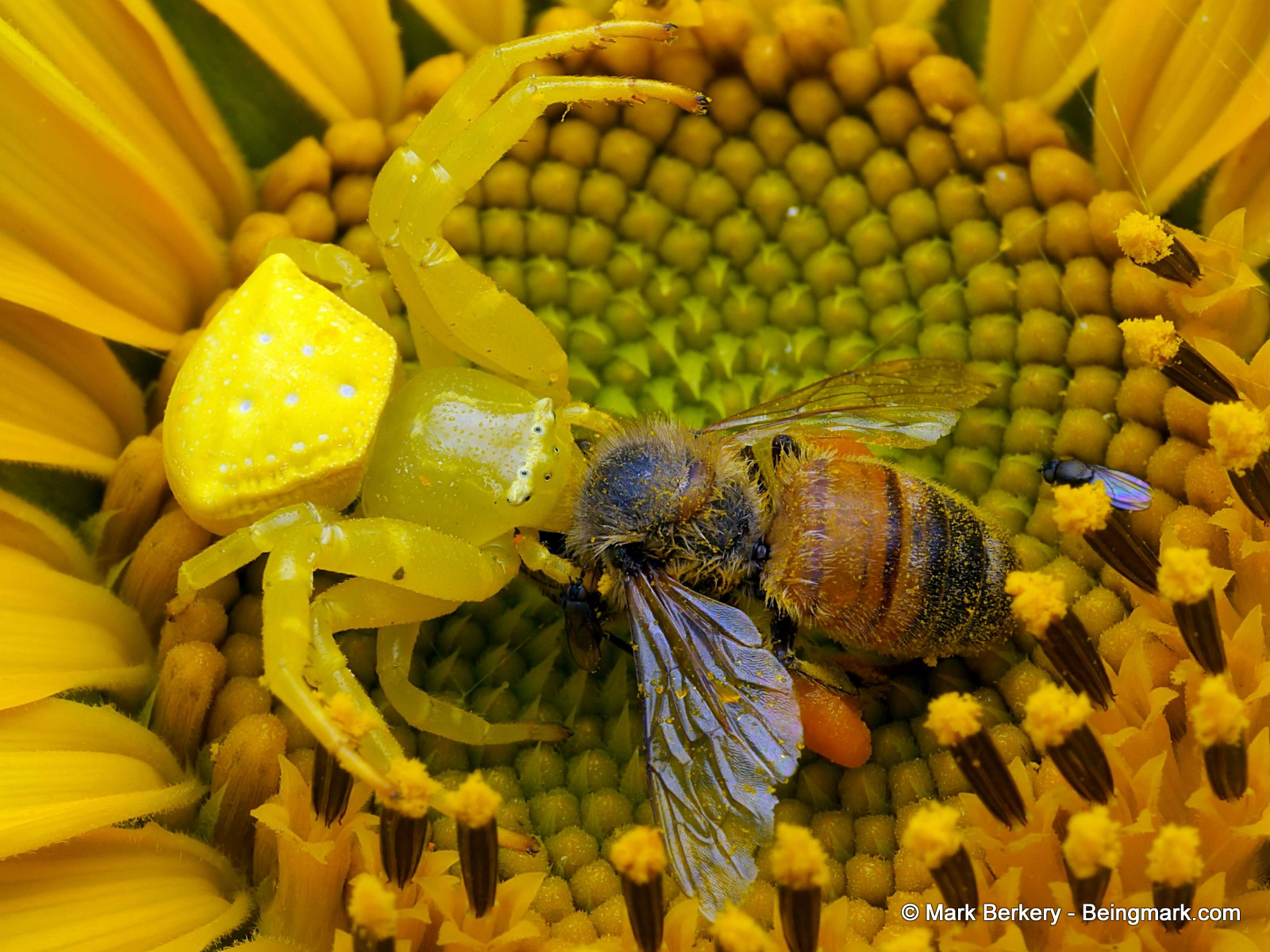 Being dead, no good for a bee. Or is death something else than a little body bent to spider queen. Coup de grâce complete.