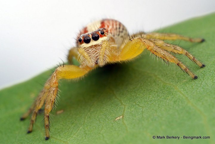 The genius … in a jumping spiders big eyes to see, her spiky legs to catch, clawed feet to grip with …