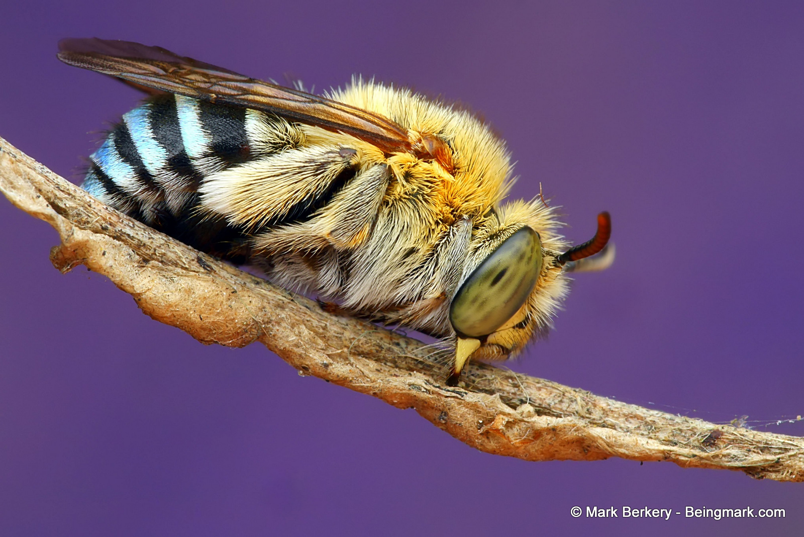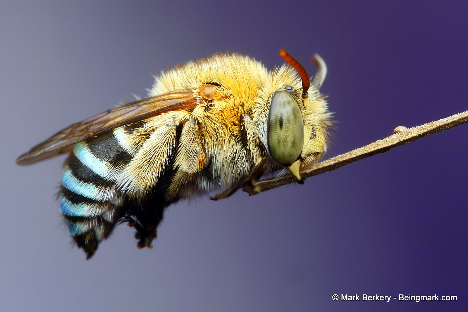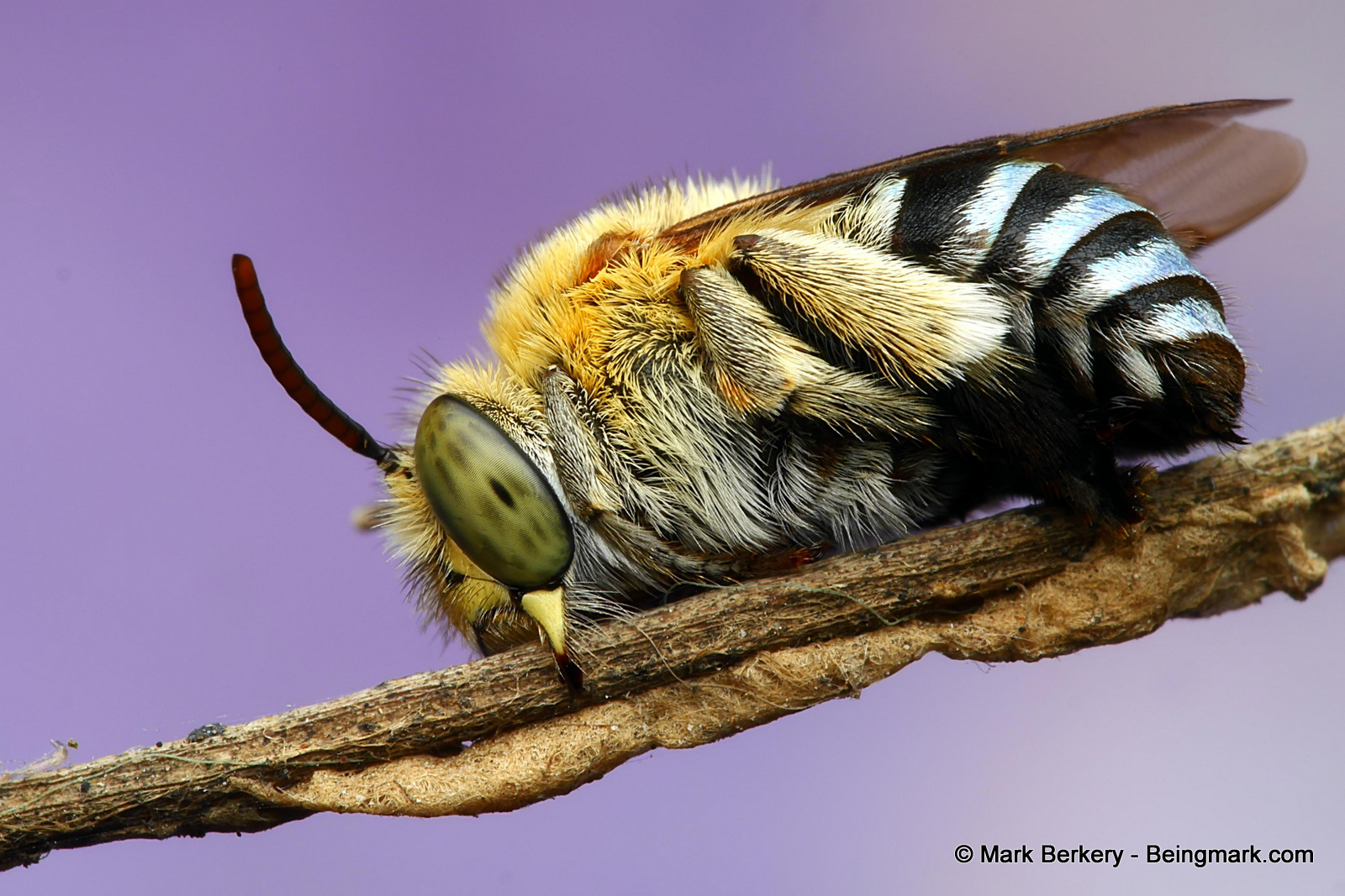Colder and colder, fewer and fewer, the Blue Banded Bees are making a heroic effort at surviving. They also have the sense to shelter from the cold clear sky at night, hanging from a thread.