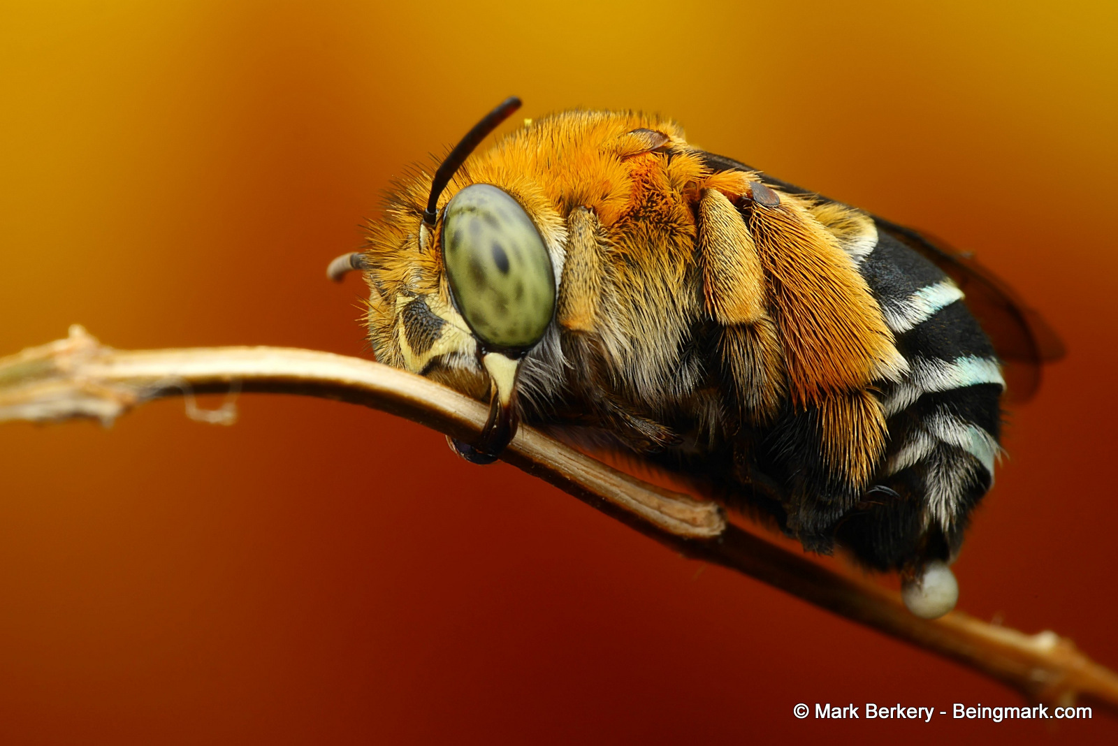 And just for a change, the angle is relative, down is often how they hang. Magnificent little Blue Banded Bee.
