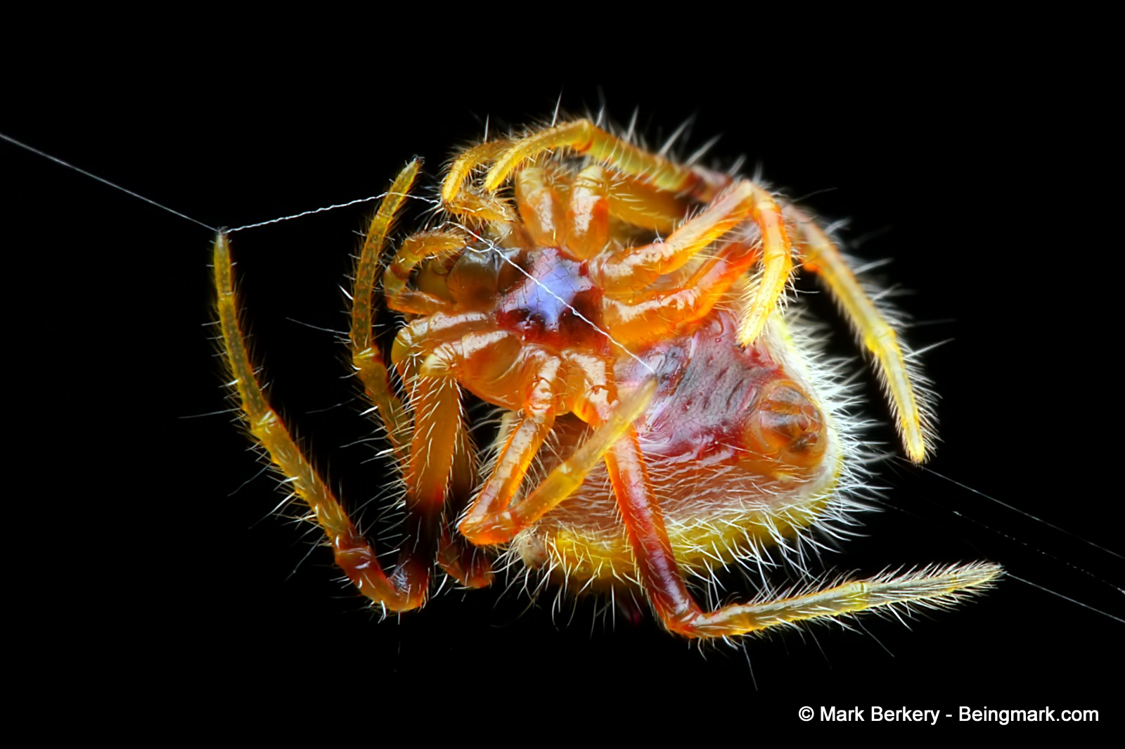 A garden orb weaver, keeping her line taut, the better to feel what’s going on where it can’t be seen. Weavers of death to many in the garden, and a face full of web is not pleasant.
