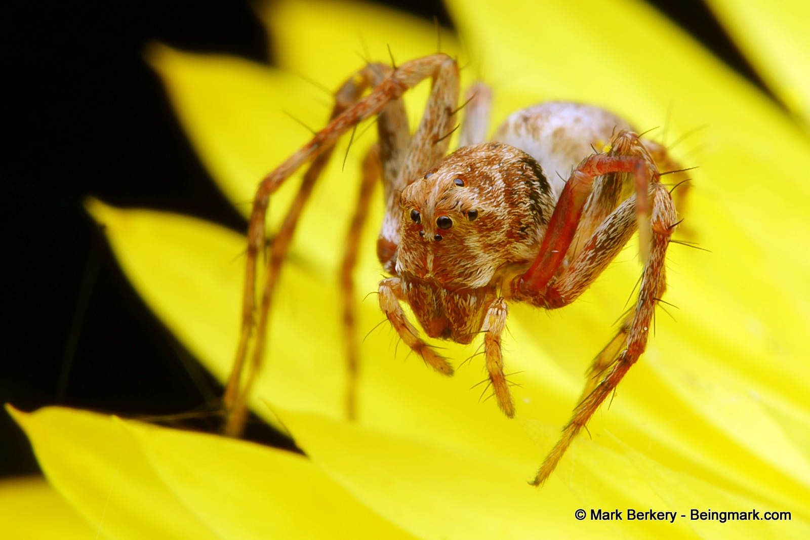 Tiny spider surviving the winter hunting on the long lasting strawflower.