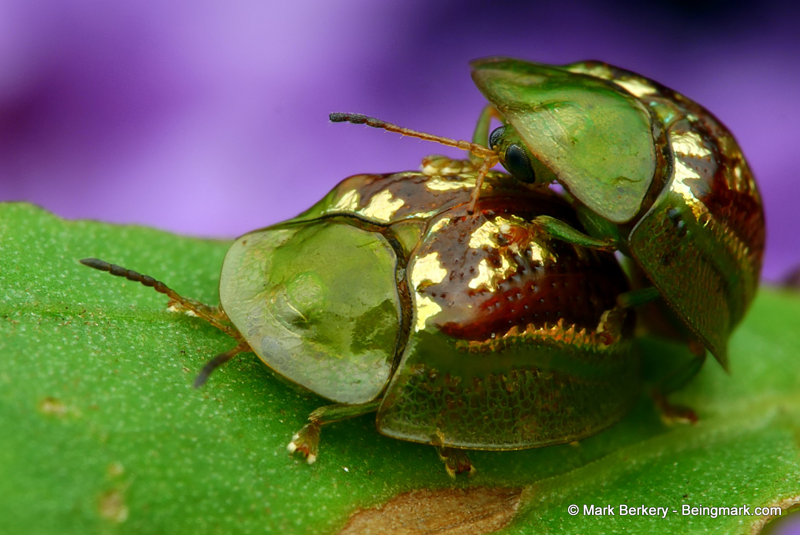 The horseshoe beetle living its life out on the sweet potatoe leaves. With some nasturtium and other for wallpaper.