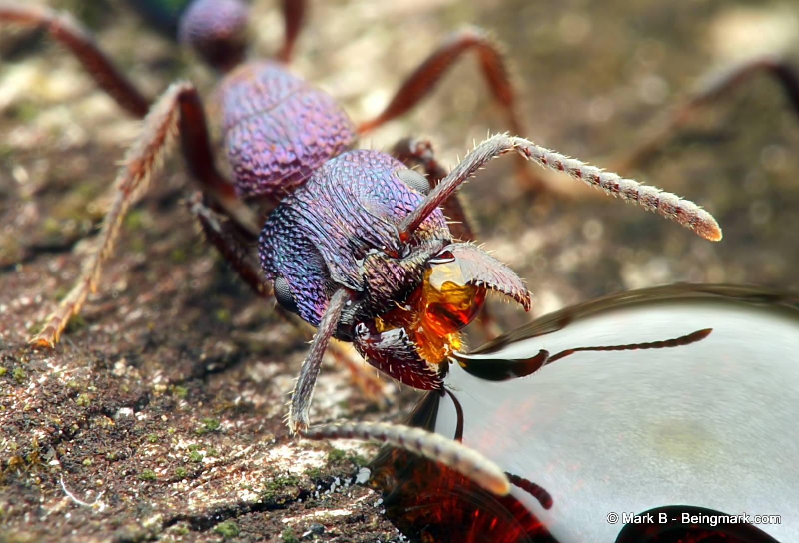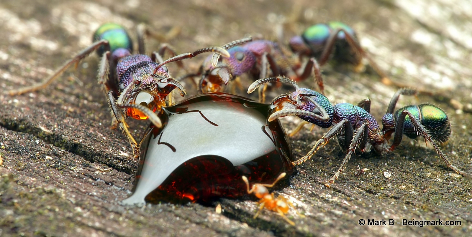 Tucked below the retaining wall of the raised garden beds, these green head ants do live and die.