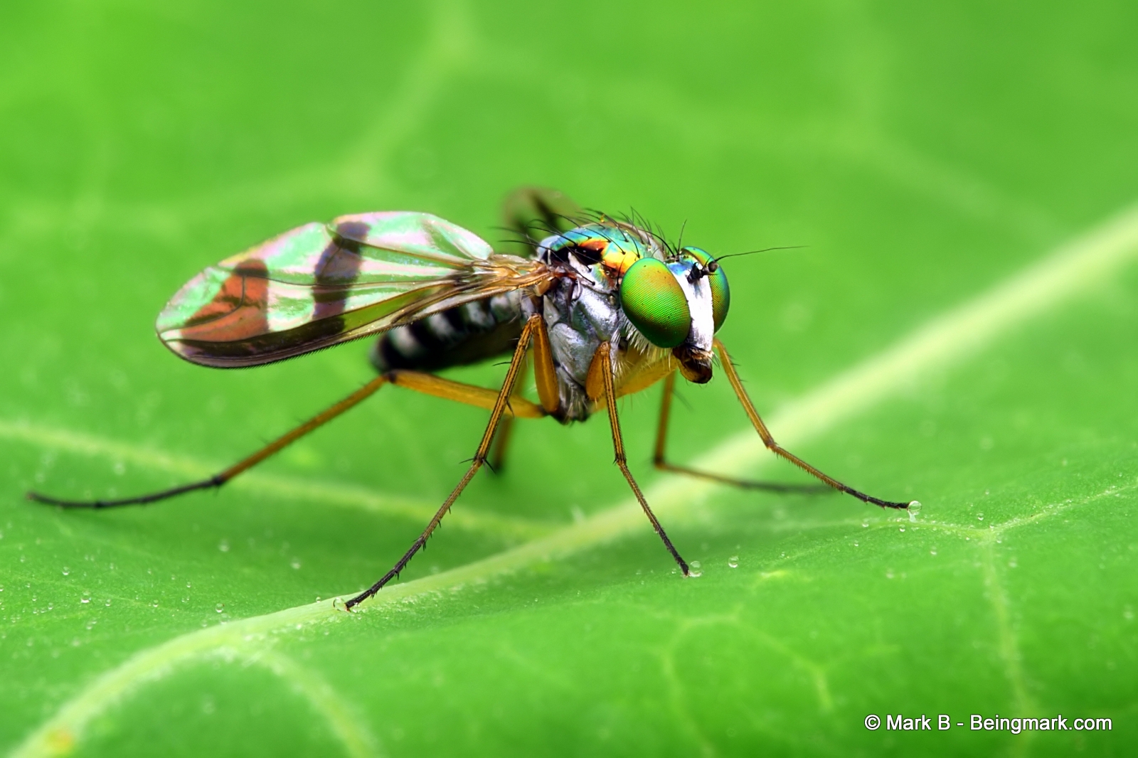 A colourful fly. Sensitive to light you’ve got to be lucky to get a shot using pre-flash – on auto exposure.
