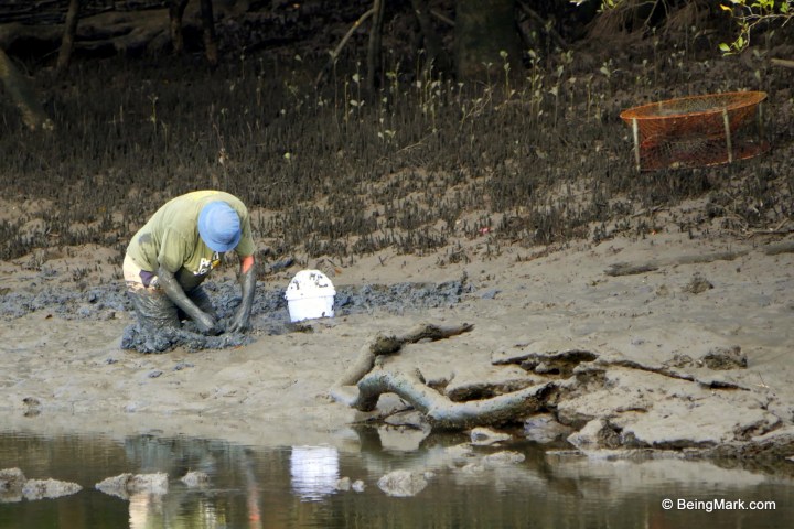 Digging for bait I reckon. Doesn’t mind the dirt. Yeah, not my thing at all – no need to fish I suppose.