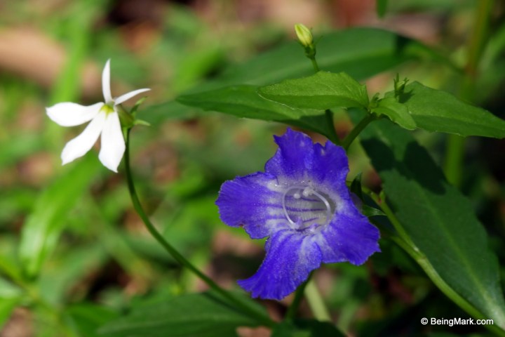 Somewhere else, flowers growing in the dark of the forest in a creek bed that the rains have cut in the hilly ground. Time to go …