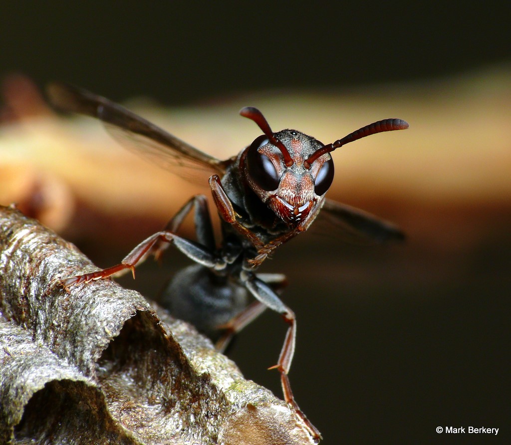 Down towards the water I went to see the wasps at a nest I know of, native wasps. They are small dark hued creatures and like all wasps are alert to any intrusion. I am always careful when in the bush but particularly around wasps as they are very active in defense of their nest. It’s a good idea to give them no cause to interpret any action as aggressive, as they will attack. David and Goliath style.
