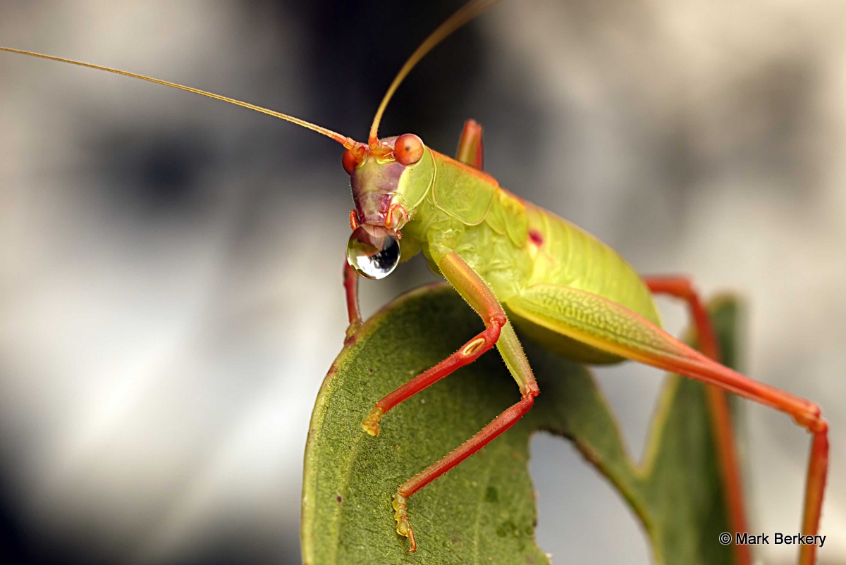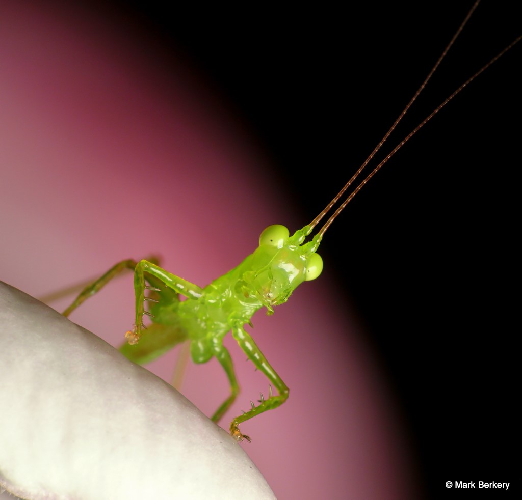 Shiny green Katydid on the planet Frangipani with pink moon rising behind. Well, it could be a planet to an insect – the Frangipani tree. Didn’t stay still for long but long enough. Always enough even when the result is in the negative – no shot. What isn’t is imagination.