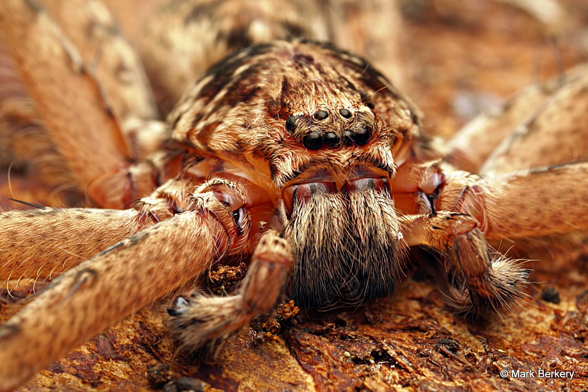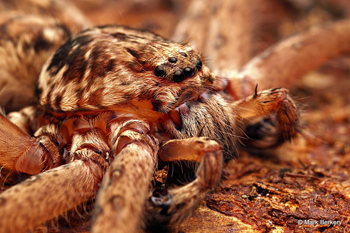 I took the loosened bark down from the side of the tree and turned it gently but quickly as it came away so whatever might be on the other side became visible and exposed, perhaps triggering a freeze response and not flight or fright. There, sitting stock still, was a huge male Huntsman.