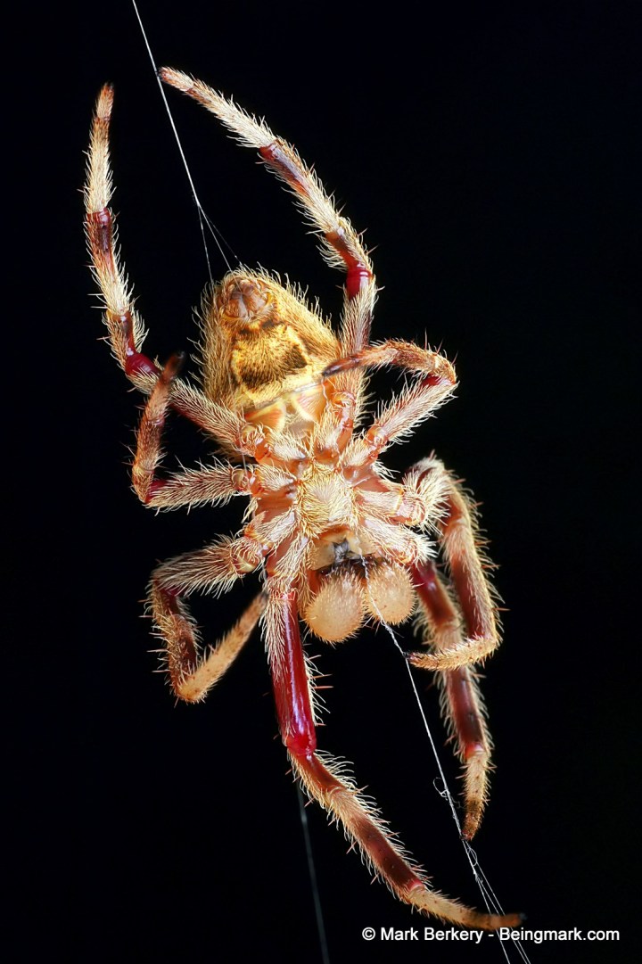 If there’s anything can discourage an assassin bug it’s this spider, an orb weaver. But they never meet this dark night. Who knows what may be the next …