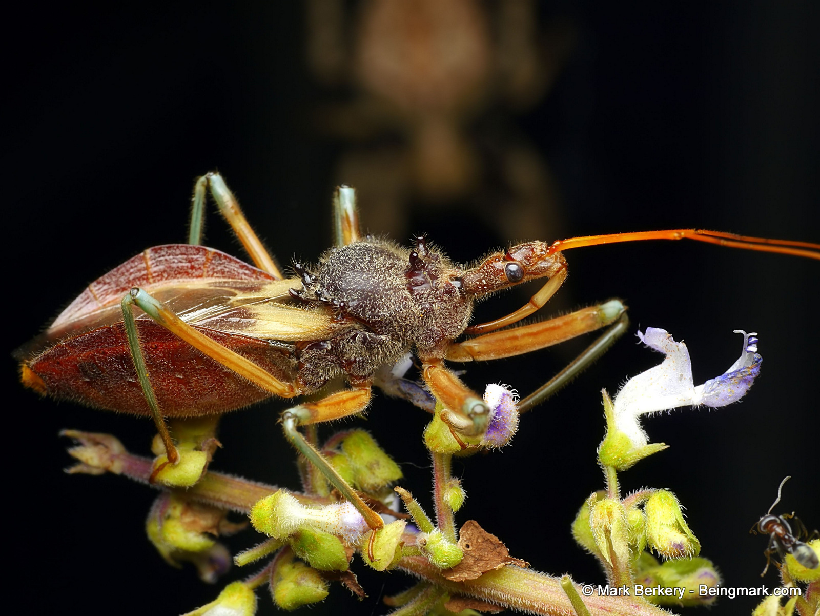 What’s this coming up the branch, a new kind of bug, a mutant … or is it an assassin bug holding on to dinner.