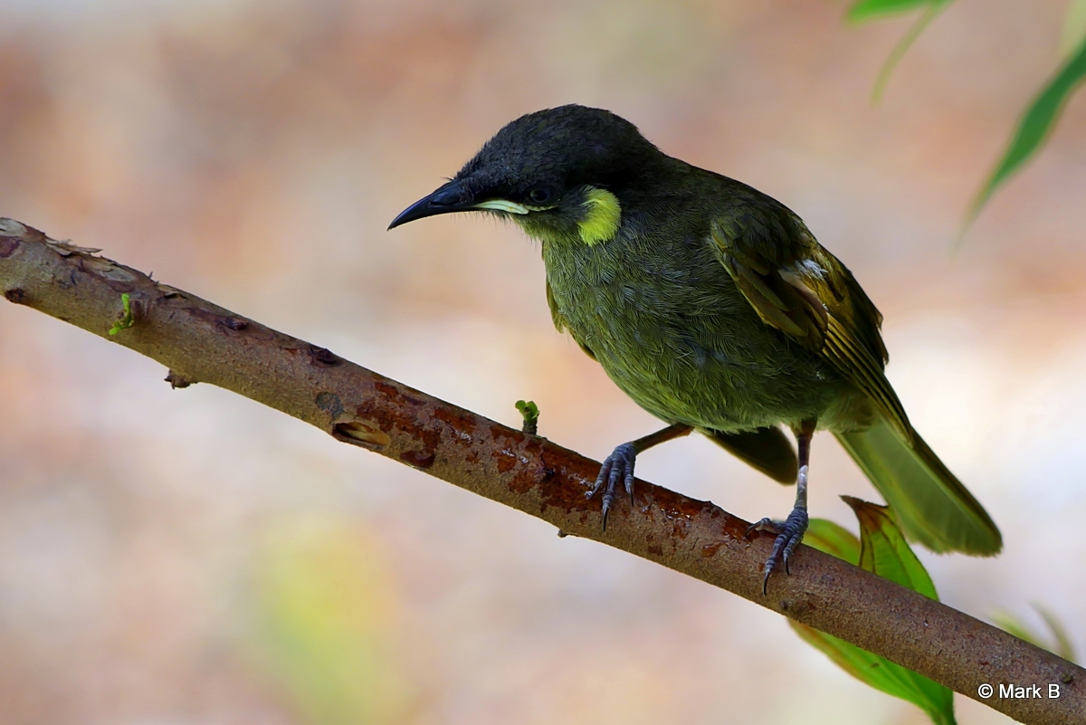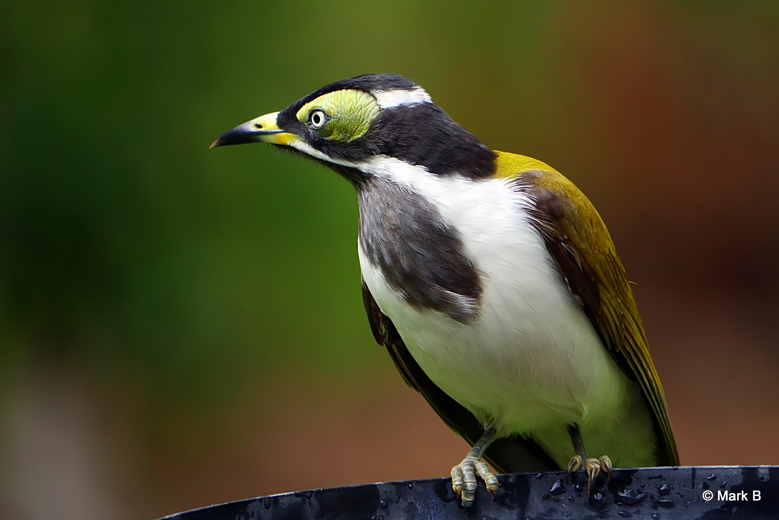 Another honey eater on the same branch, looking down at the birdbath. The same bird that was nesting in that tree when I arrived here, but moved on when the nest was damaged. Another family that visits regularly, for a regular clean bath …