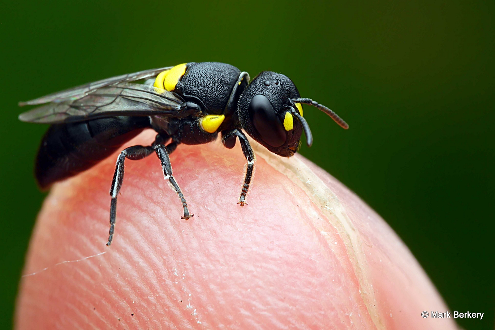 The one on my finger was rescued from the water, of which there are various locations in the garden. The other landed on top of one of the bee hotels and set to preening itself, out of the way of the passing populace, some of which are predators.
